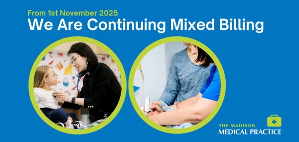 We are a mixed billing practice, meaning we bulk bill directly to Medicare for patients under 16 years and over 70 years for weekday consultations. Patients aged 16-69 who do not have a valid pension or DVA card, will be charged privately. Please see our fees under “Patient Information”.